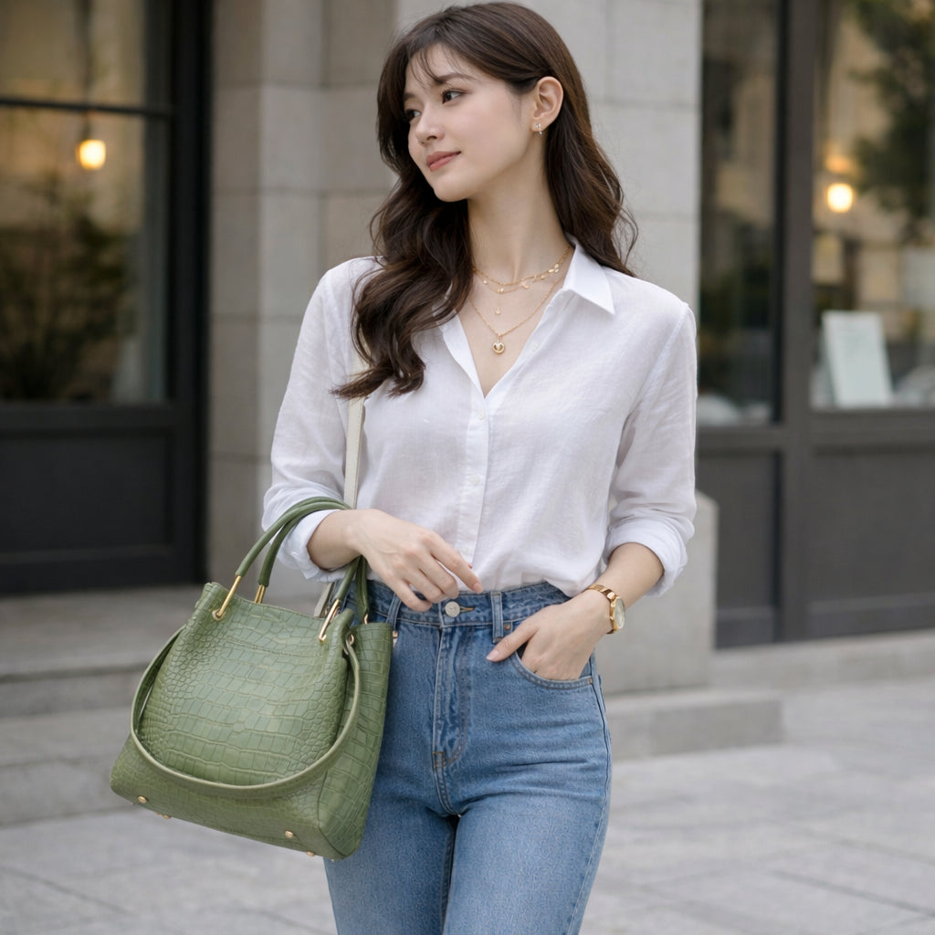 「このバッグは、コーデ全体を静かに整える存在です。」