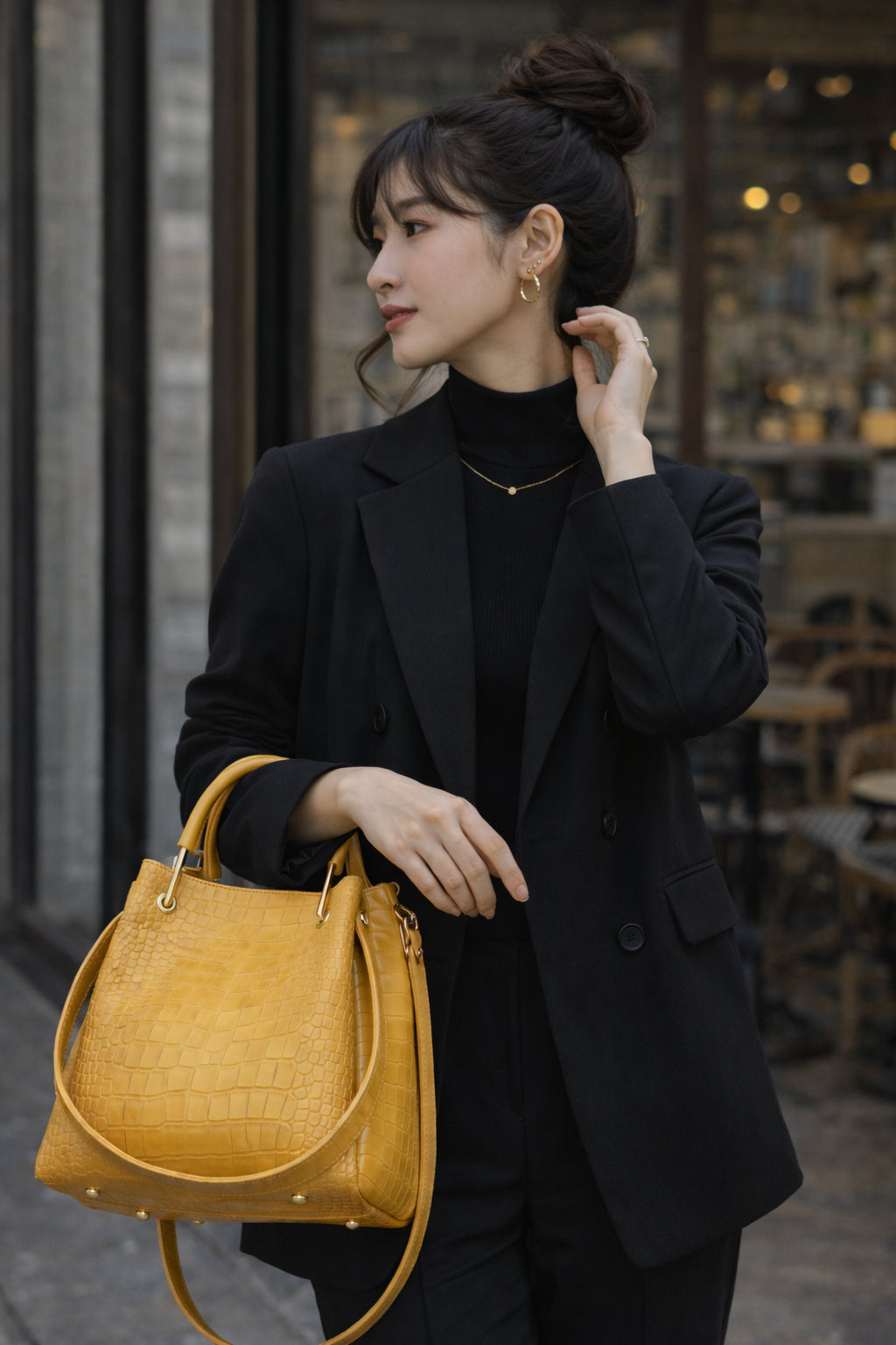 派手さではなく、調和。 目立つためではなく、印象を整えるためのバッグです。